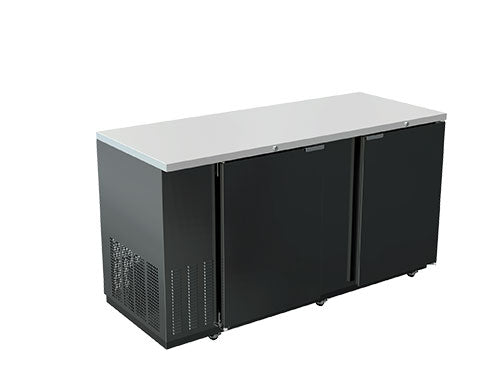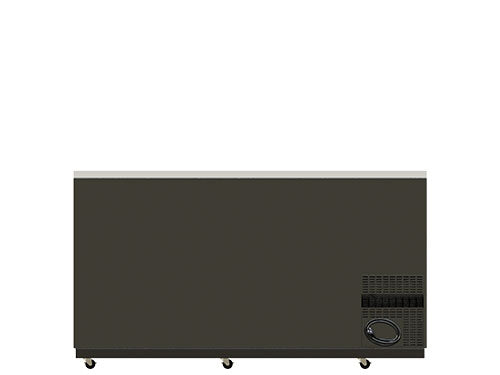 - Stainless steel 18 gauge top and stylish black vinyl finish front, sides, and back. The interior built is galvanized steel walls with coved corner stainless steel floor.